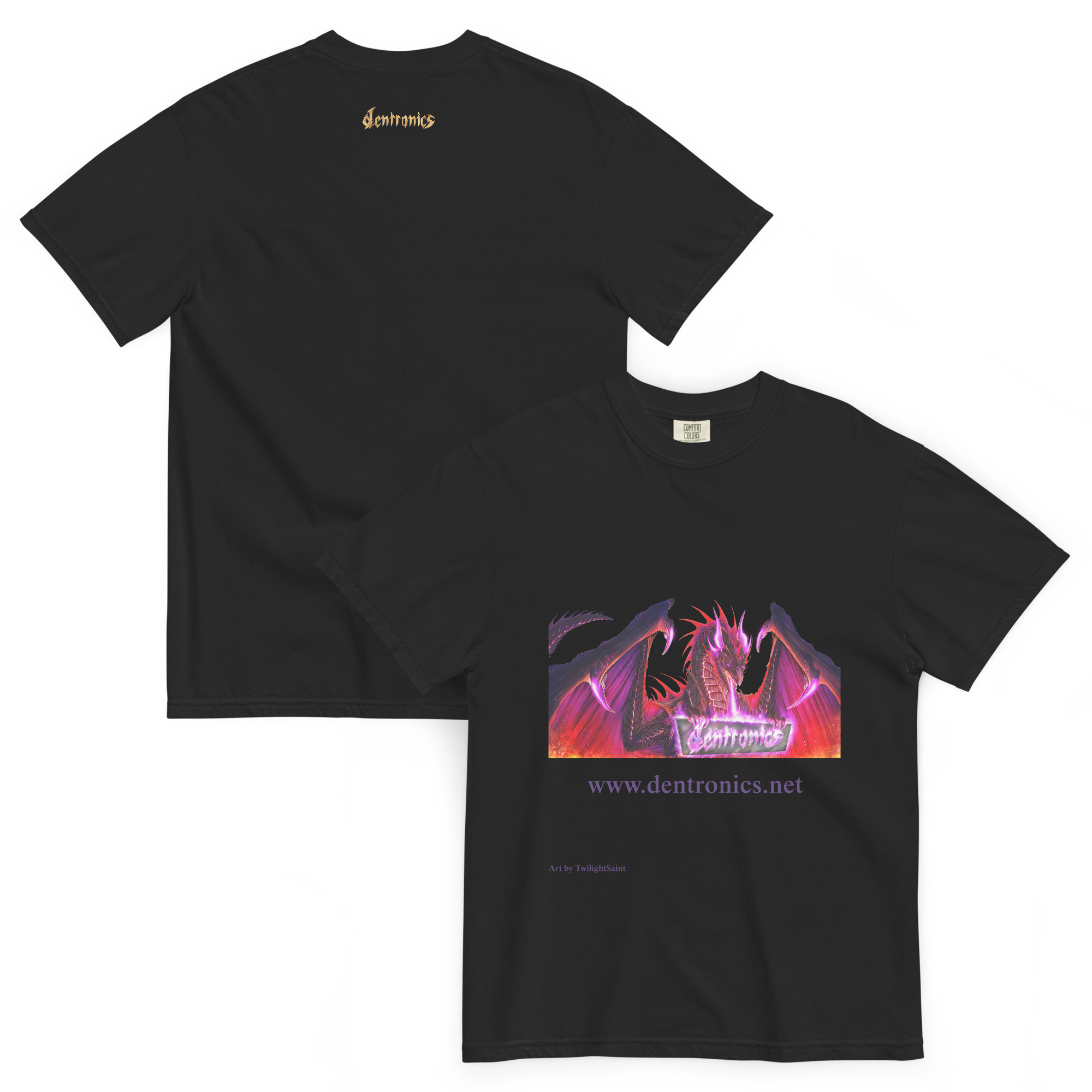 Sick shirt featuring the business mascot along with the dentronics logo. Art by TwilightSaint, commissioned by me and fully commercially licensed.